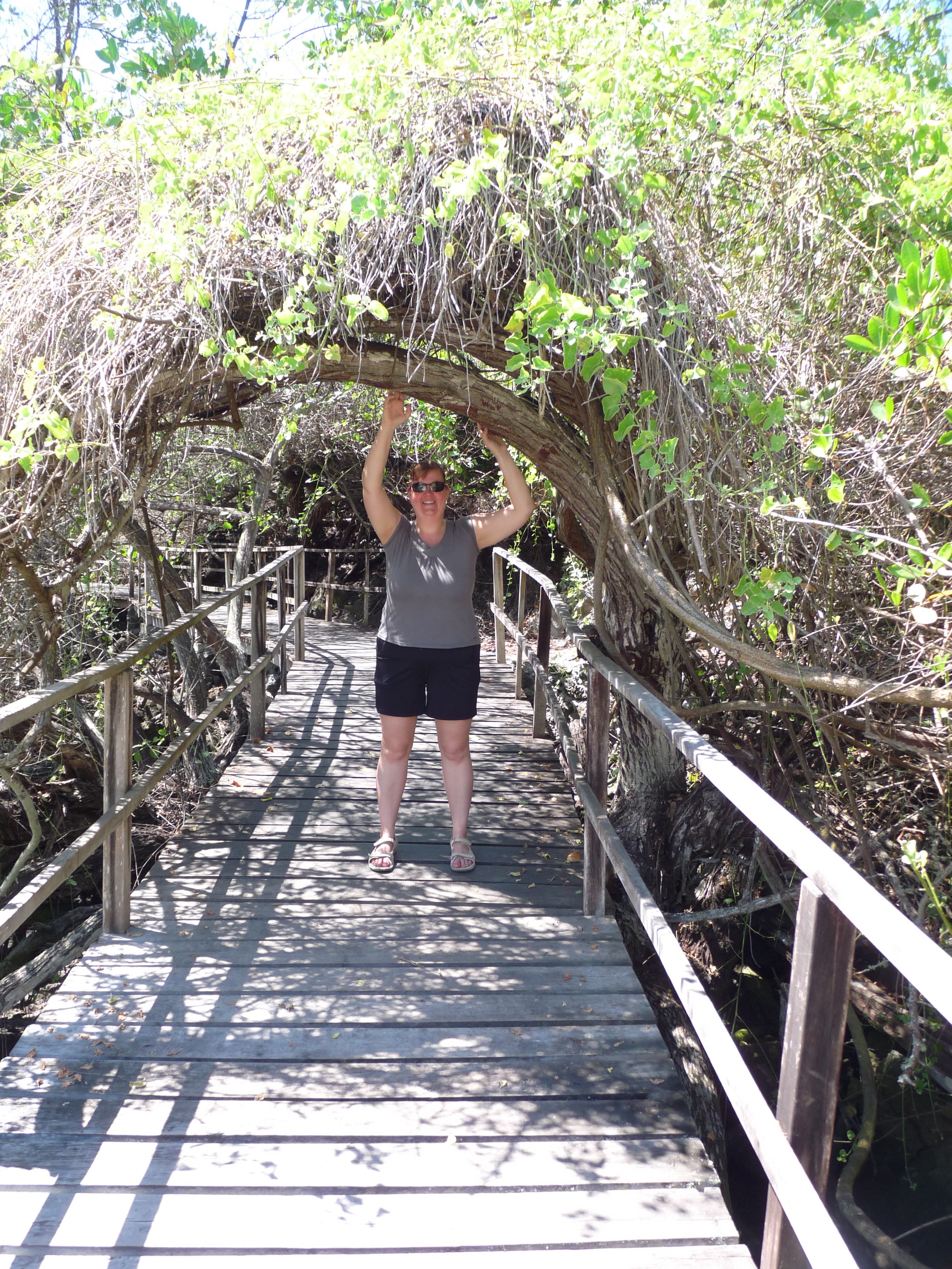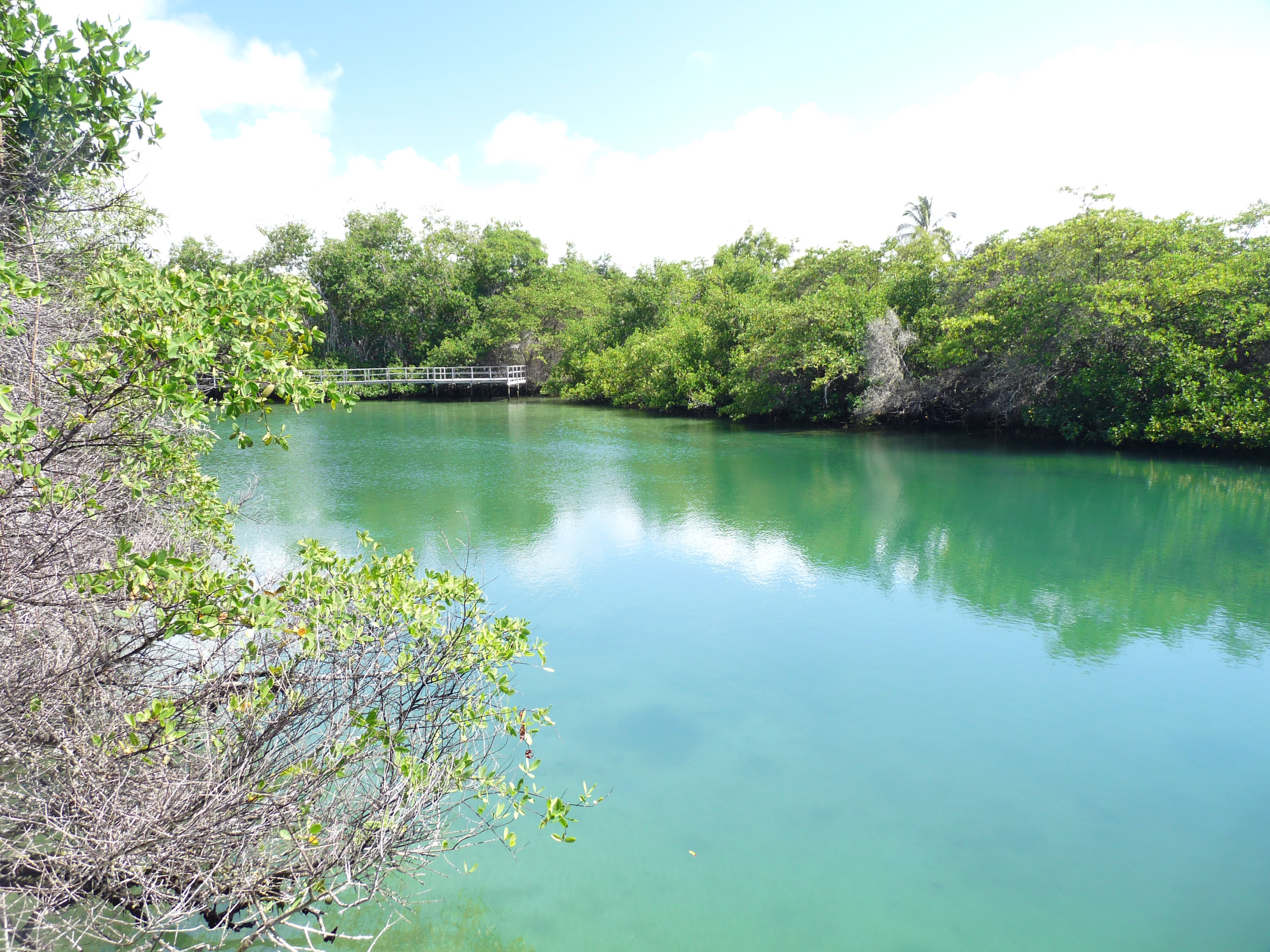 Literally right next door to us is the Las Ninfas lagoon (lagoon of the nymphs). It is a mangrove lagoon surrounded by wooden boardwalk and nature signs. We took a stroll around and saw a blue skate (a kind of ray), tons of fish from minnow size to 8″ and surprisingly a sea lion cruised through. Quite serene and beautiful. The birds here are plentiful and have great songs.