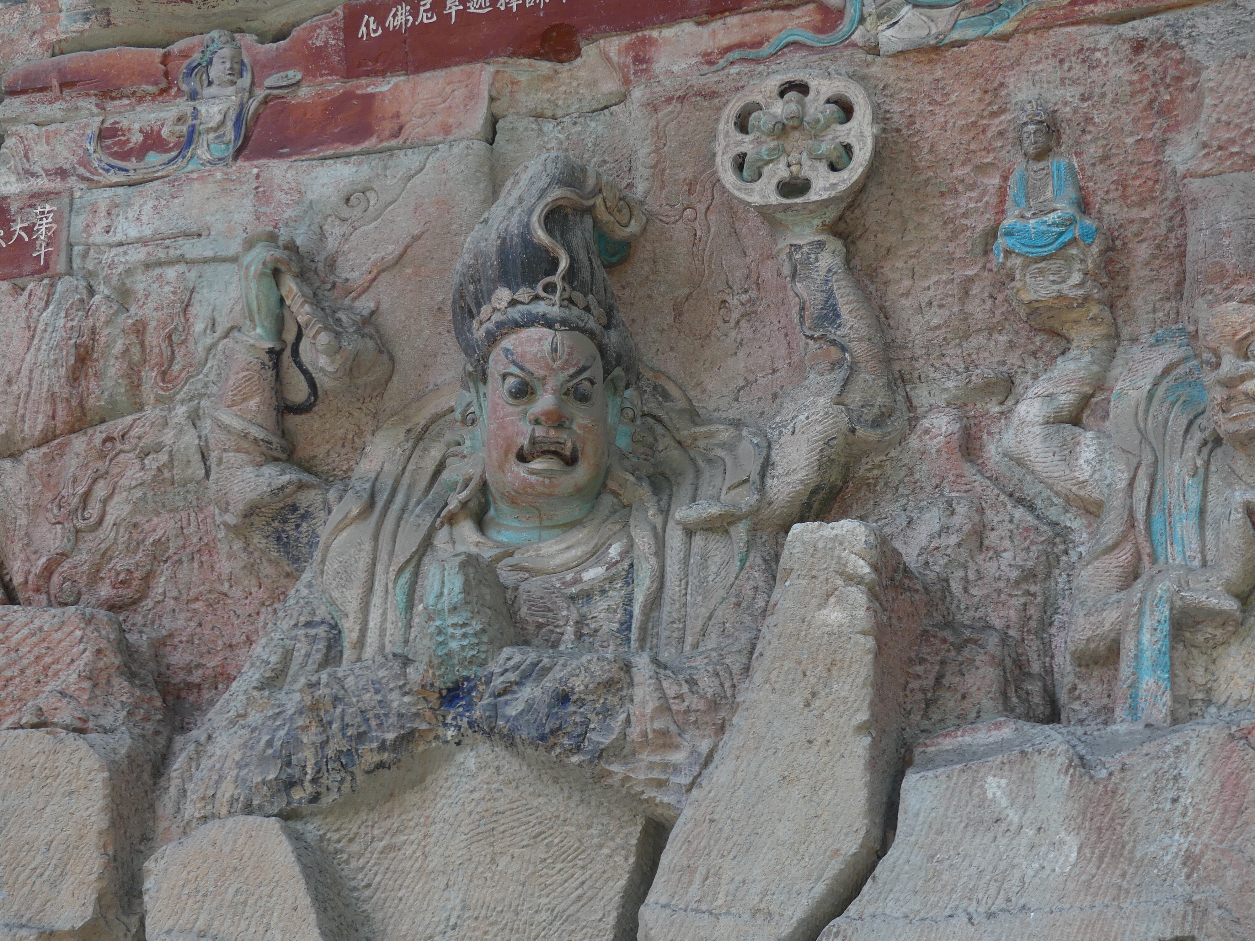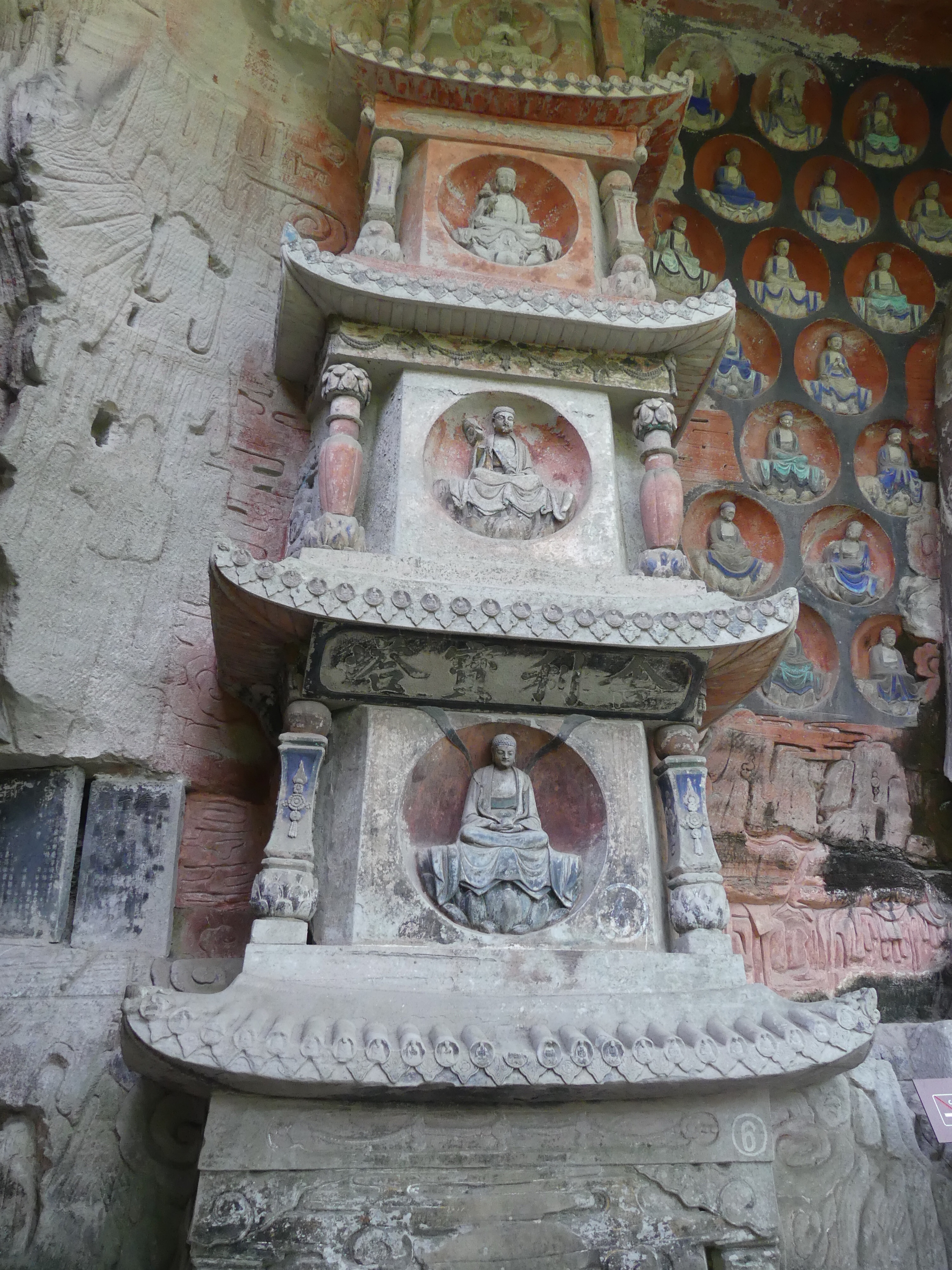 The Baodingshan Carvings is an atypical Buddhist site carved into a limestone outcropping during the Southern Song Dynasty (1127 – 1279). They cover a variety of Buddhist schools of thought. The carvings also include scenes of Taoism and Confucianism.