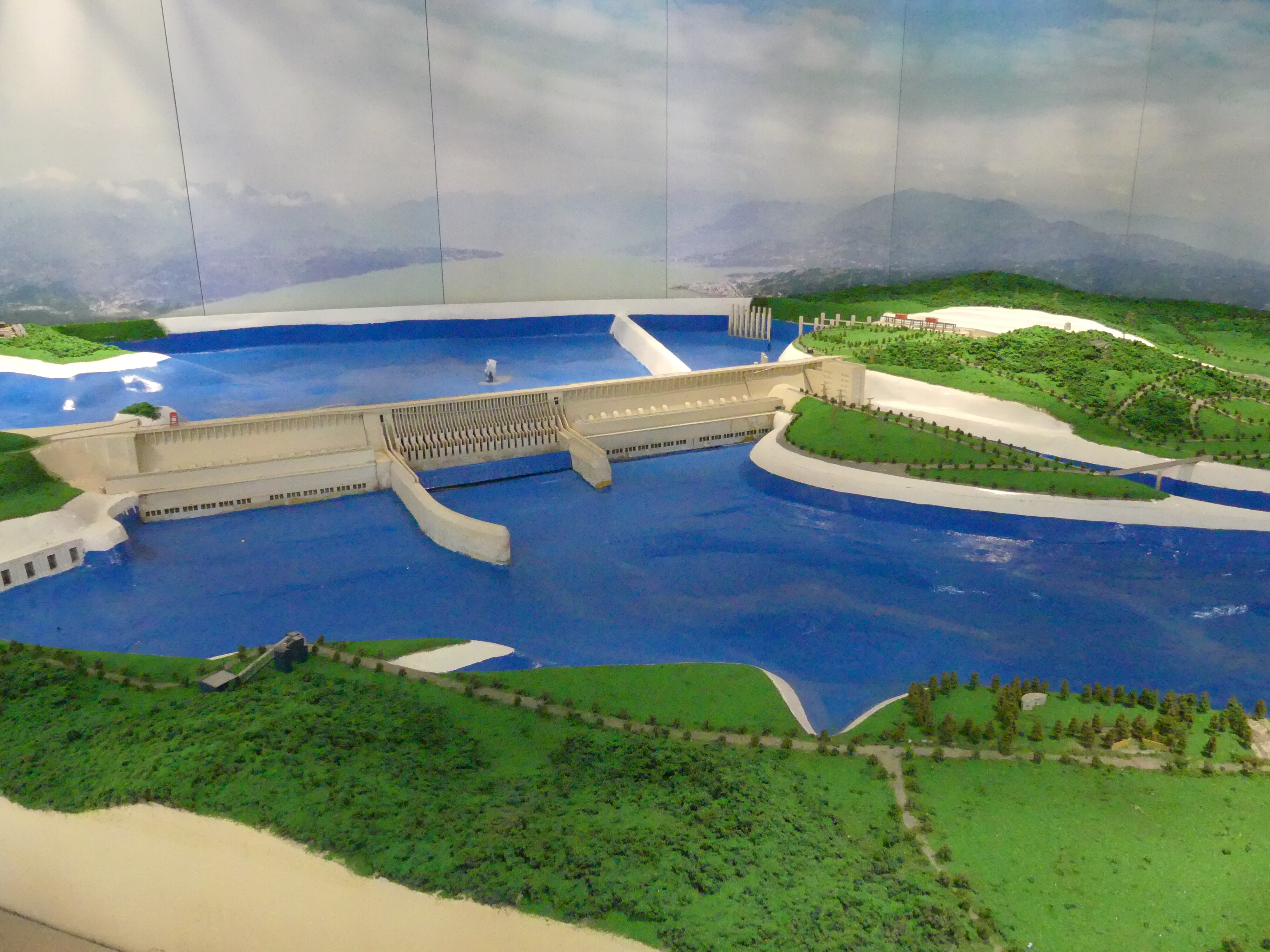 We were then taken on a tour of the dam. The whole complex is huge and has 32 power generators generating a billion watts a year. As big as it is it only generates 2% of China’s power needs. When it was built it was the world’s largest hydro electric project and took 17+ years and $28 billion to build. 55% of that cost was the actual construction and 45% was compensation for the 1.3 million displaced people. It’s 1983 meters long and 185 meters high. Benefits are the power, and the flood control that used to kill 100’s of thousands every monsoon season. Downside it that it drowned towns and archaeological sites. Oh yeah, the sturgeon were nearly wiped out too because they couldn’t migrate to spawning grounds. At least now they have breeding programs in place to bring them back. The sturgeon, not the displaced people.