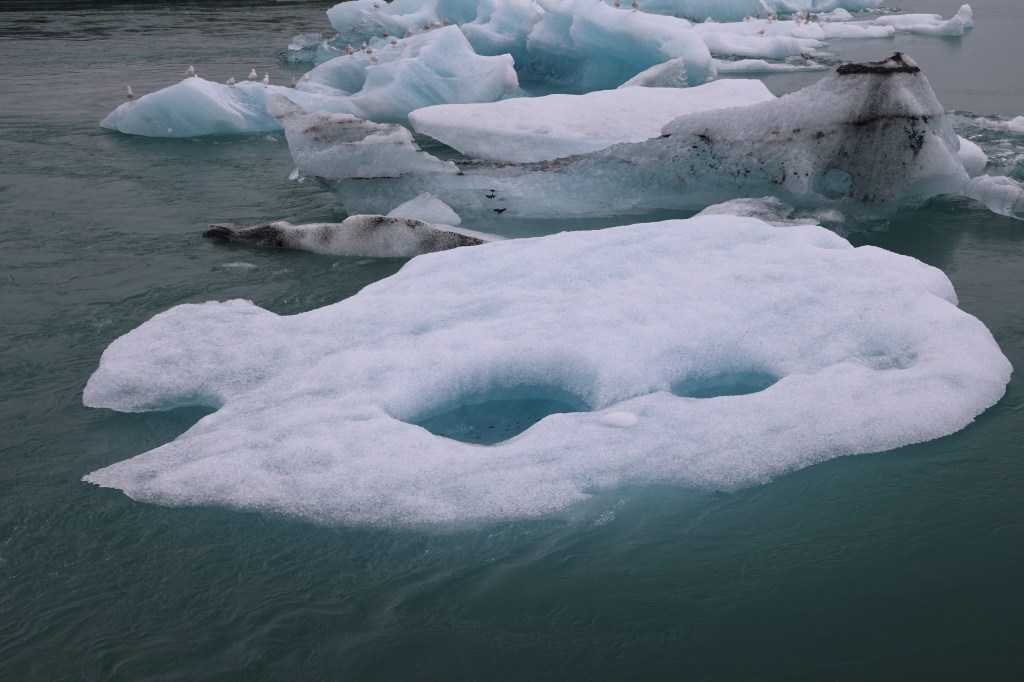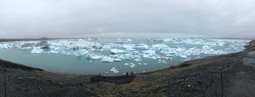 We took a very long drive today (2.5 hours) east to see the Jokulsarlon Glacial Lagoon – a freshwater lagoon full of icebergs calved off the Vatnajokull glacier.