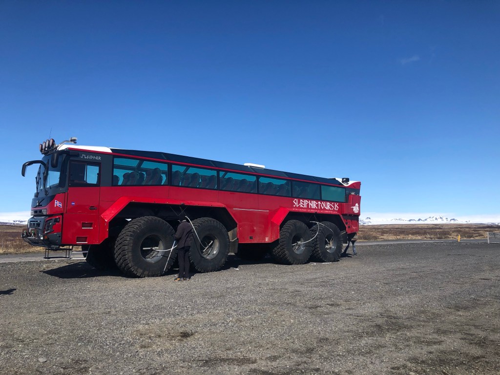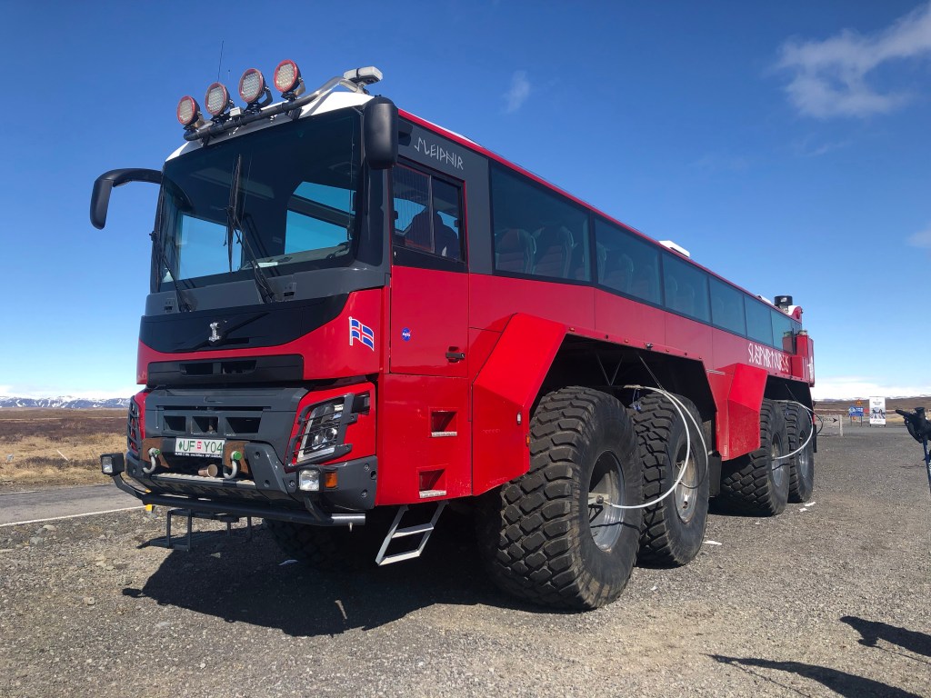 There were various tour vehicles parked in the upper parking lots. This is one of the more extreme ones. Iceland is a huge 4×4 engineering mecca.