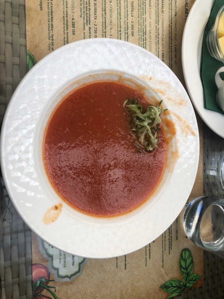 Lunch was at Fridheimar Farm, a tomato greenhouse with a restaurant inside. Everything on the menu (yes everything) contains some form of tomato. They grow four different kinds of tomatoes and harvest about 2 tons every day. Most remain at the restaurant or local supermarkets. Very few are exported out of Iceland.