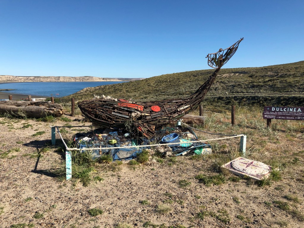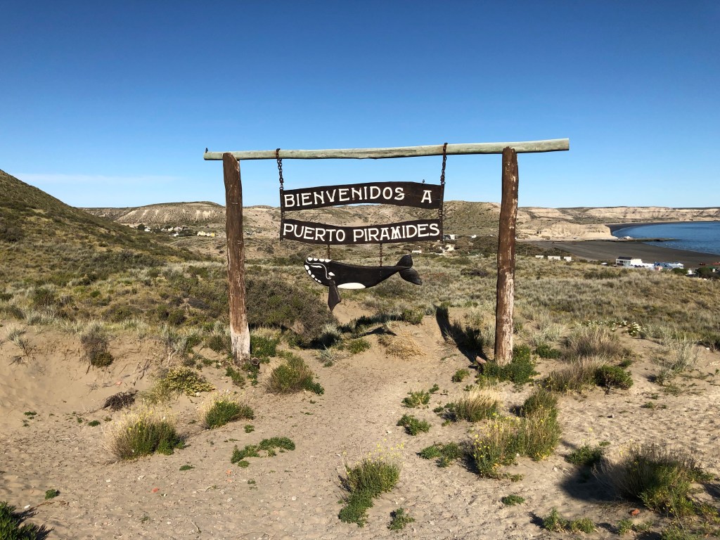Just under two hours brought us to the Peninsula Valdés National Park. Puerto Piramides is the only settlement on the Peninsula Valdes. Only 600 people are allowed to live here permanently. It is a very small town. Beautiful but tiny. It reminds us of Vik in Iceland, complete with quasi-black sand beach and interesting limestone promontories on both sides of the bay.
