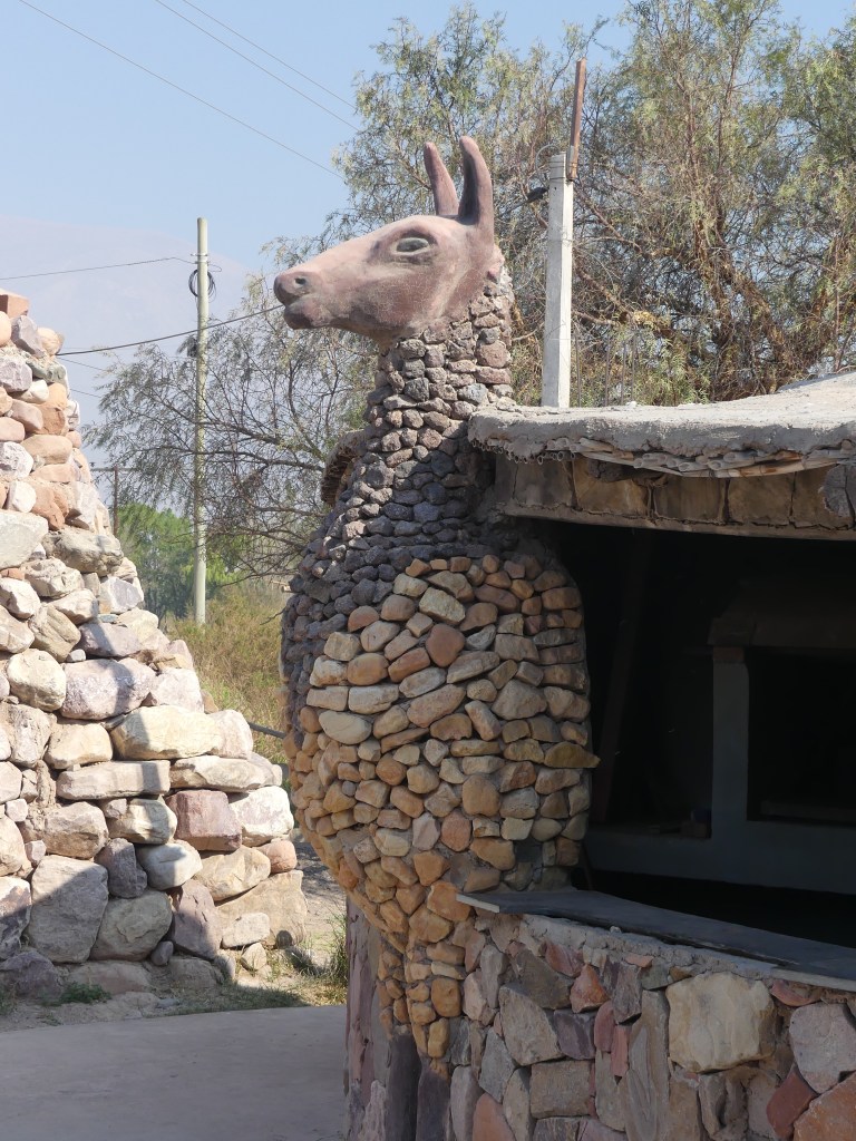 Very long video as the Father doesn’t move fast.Heroes of the Independence Monument pays homage to the Northern Argentinian Army who fought a total of 14 battles in Humahuaca during the National Independence War from 1810-1818The native chasqui (Incan messenger) Pedro Socompa transmits the news of freedom from atop the monument (although some people from the region say the statue is of Diego Viltipoco, an Omaguaca chief who helped in the battles against Spanish loyalists)The original monument.We found a fun Che Guevara-themed place for lunch.No entry if you’re in a bad mood!Kris found the local dark beer.Portions here are huge – we should have shared