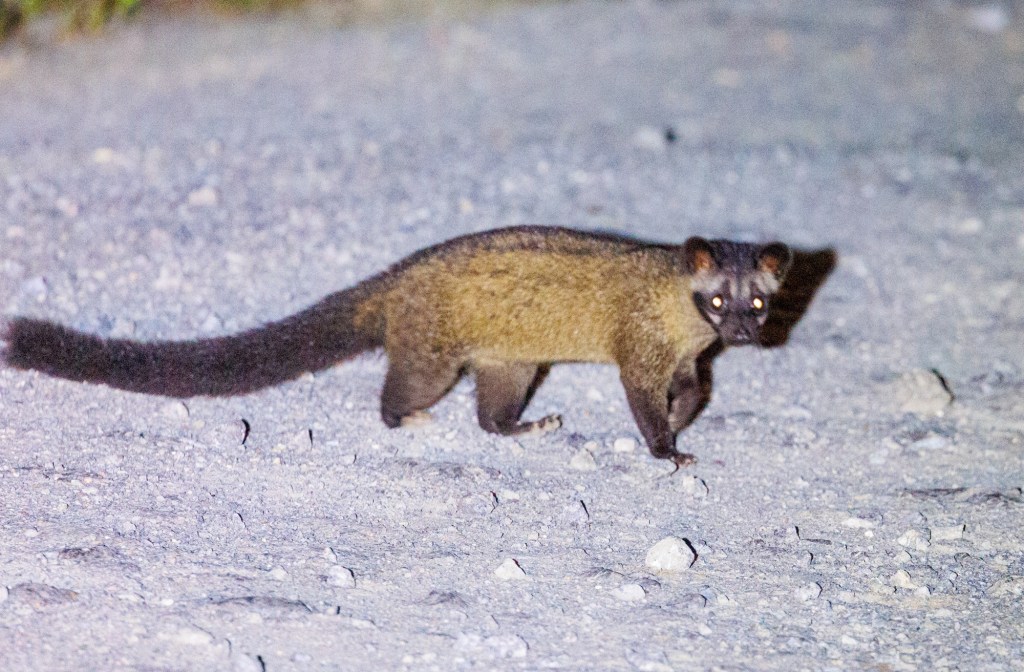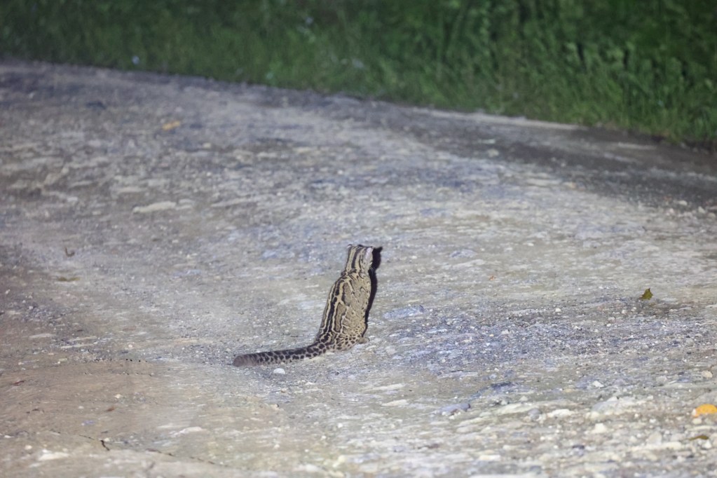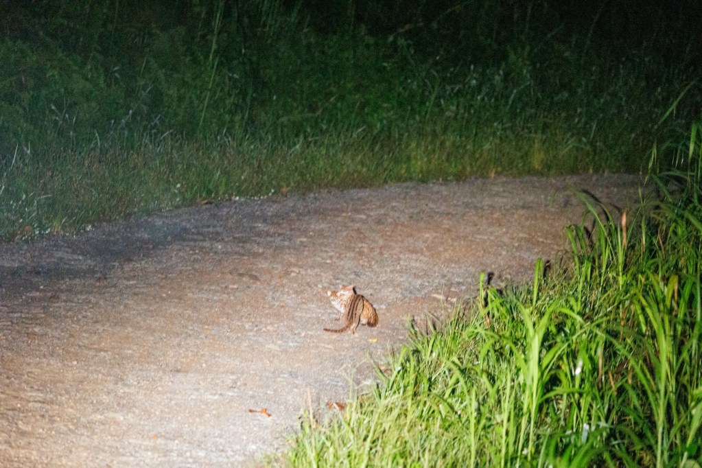 We saw two of the leopard cats running together down the road – not a great photo, as they are moving pretty quickly in the dark. Maldin figured they were probably courting or mating.