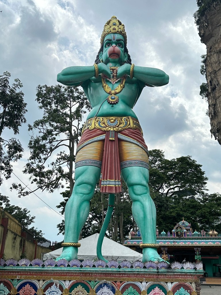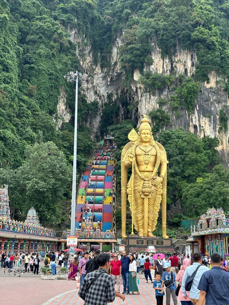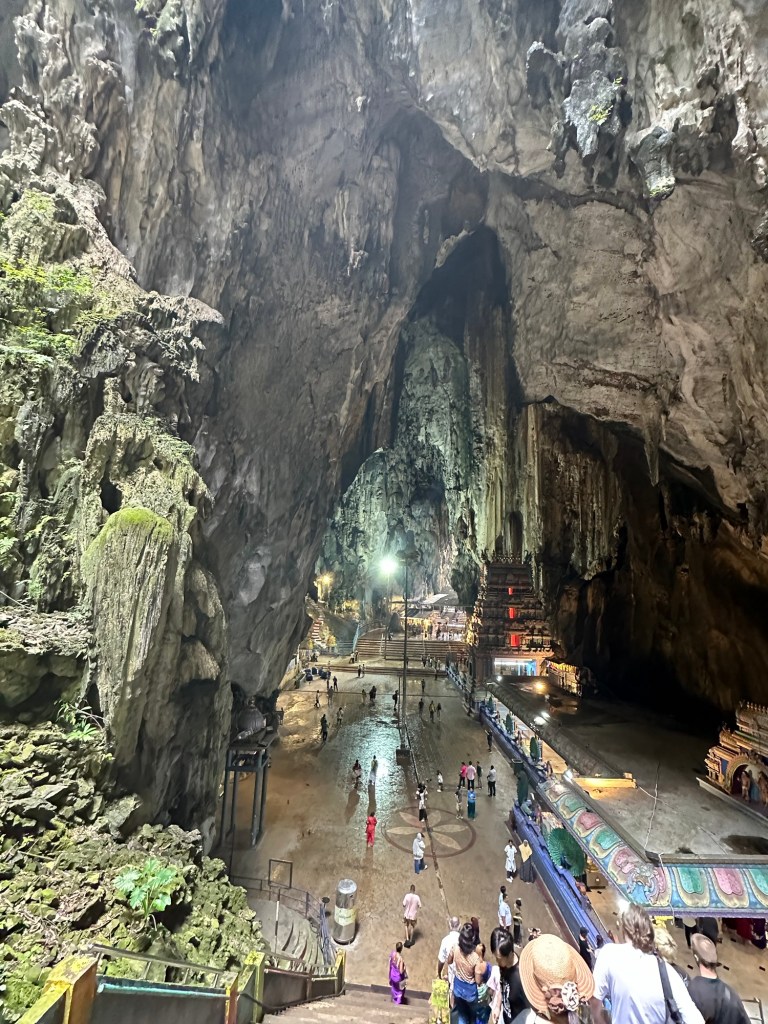 This afternoon we took a Grab (Malaysia’s version of Uber or Lyft) to the Batu Cave and Temple outside of town. The area is named for the Malay word for rock and exists within a mogote, a type of limestone/karst landform that often contain a series of caves. The temple complex is one of the most popular Hindu shrines outside of India and is dedicated to the god Murugan.