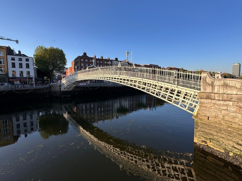The Ha’Penny bridge crosses the River Liffey. Built in 1816, it is the oldest pedestrian crossing over the river and one of the earliest cast iron structures of its kind. It was originally called the Wellington Bridge and it acquired its better known nickname from the halfpenny toll levied on all users until 1919.