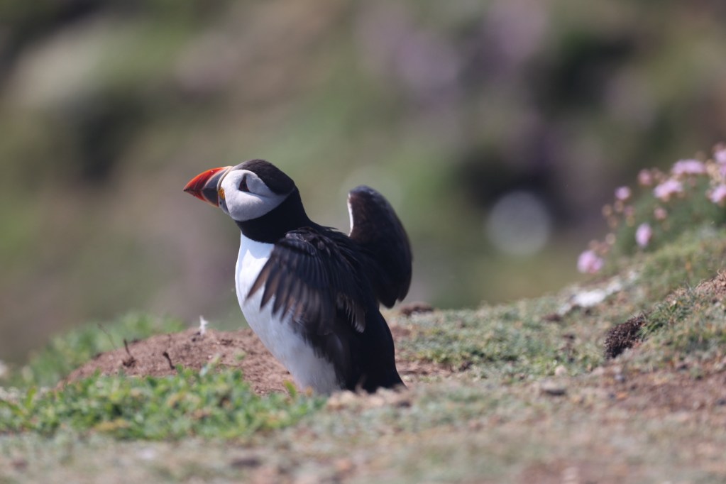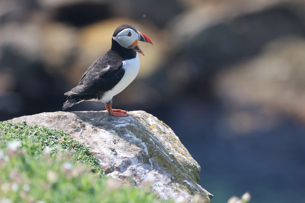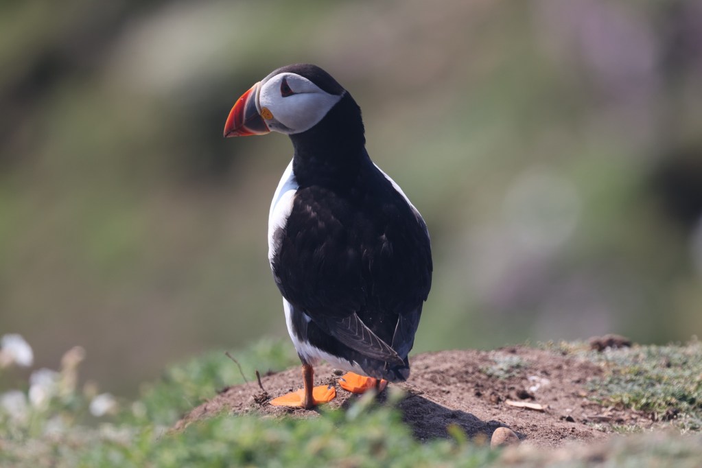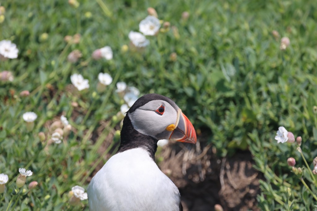 Today, there are eggs but no chicks yet so the puffin parents are feeding offshore. You only get “that” shot of the eels in their beak when they are feeding their chicks. However they are so very cute so we took way too many photos. This is only a small sample: