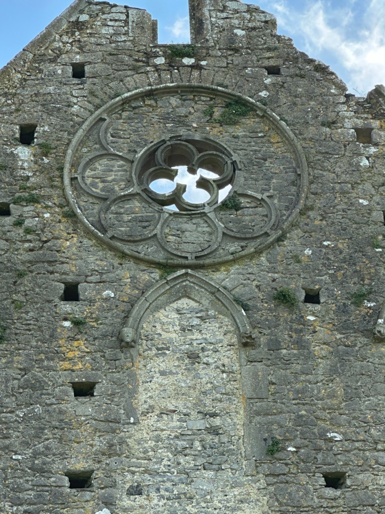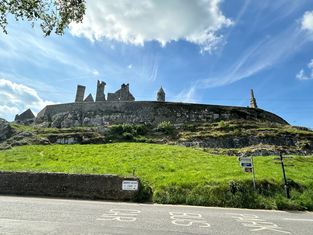 The Rock of Cashel, also known as St Patrick’s Rock, is a limestone outcropping topped with medieval buildings; a gothic cathedral & Cormac’s Chapel (1127), a round tower (1100) and a 15th C castle.