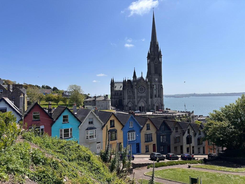 The ‘Deck of Cards’ in Cobh is a series of 20+ rainbow painted houses climbing up the hill from the harbour.