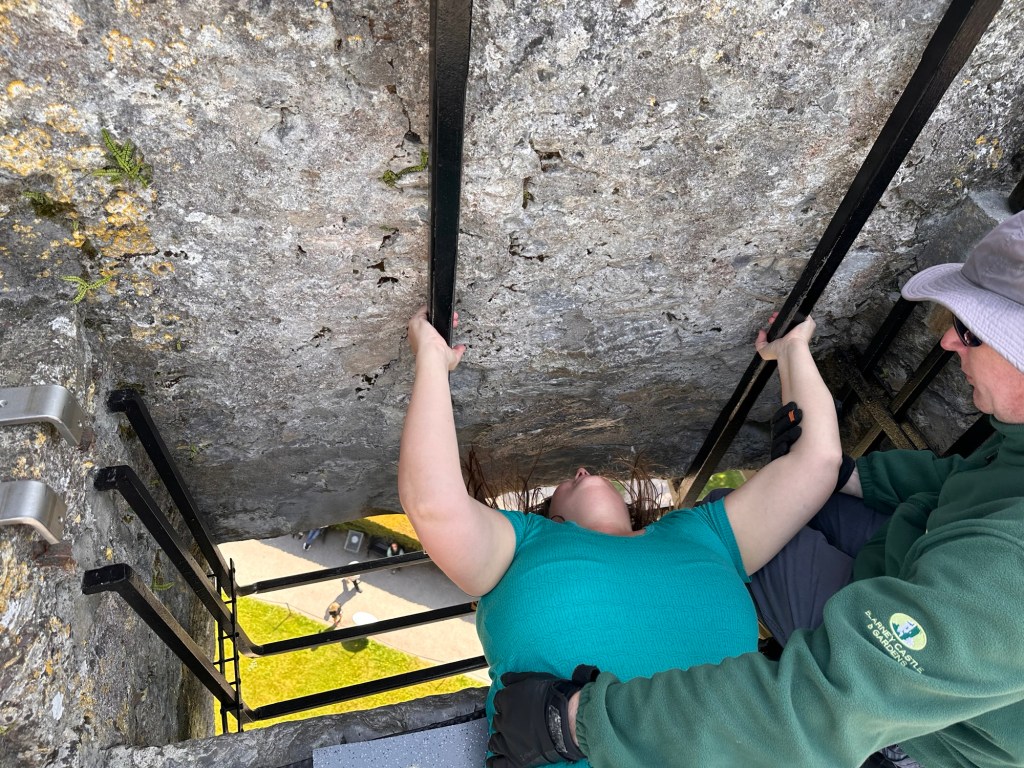Then lie on your back over a 120 foot drop in order to kiss the stone.