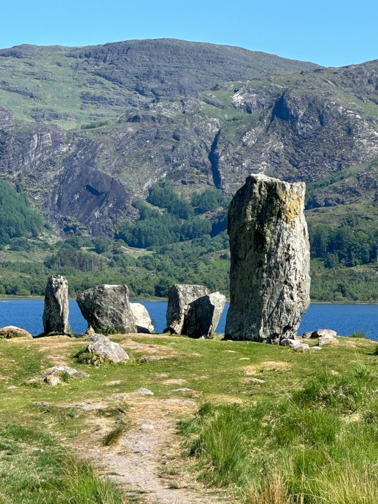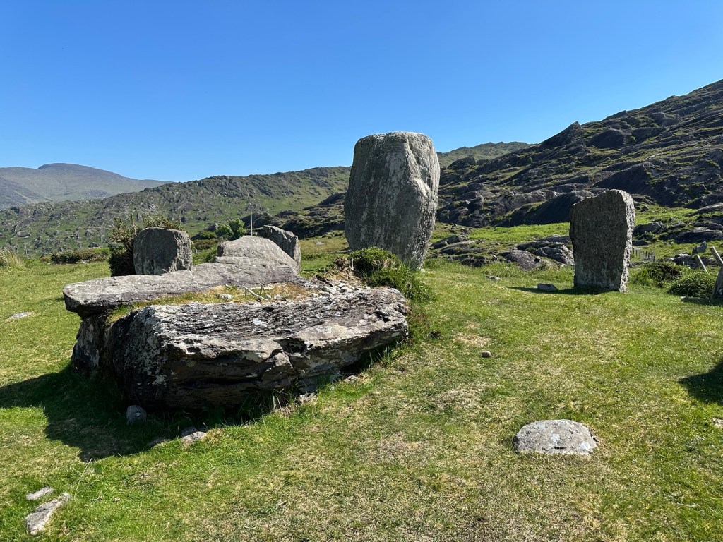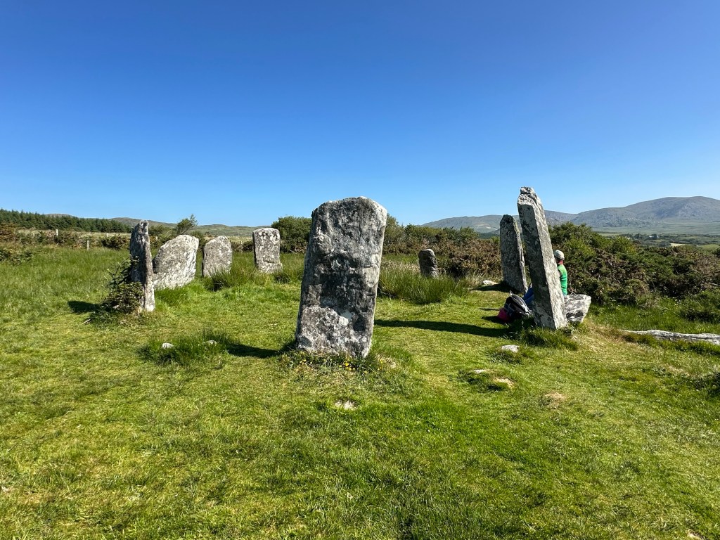 They first site at Cashelkeelty is made up of 5 stones in the circle plus a row of stones most likely dating to about 1000BC. Similarly to other circles we have seen, there were cremated remains found in the center of the circle.