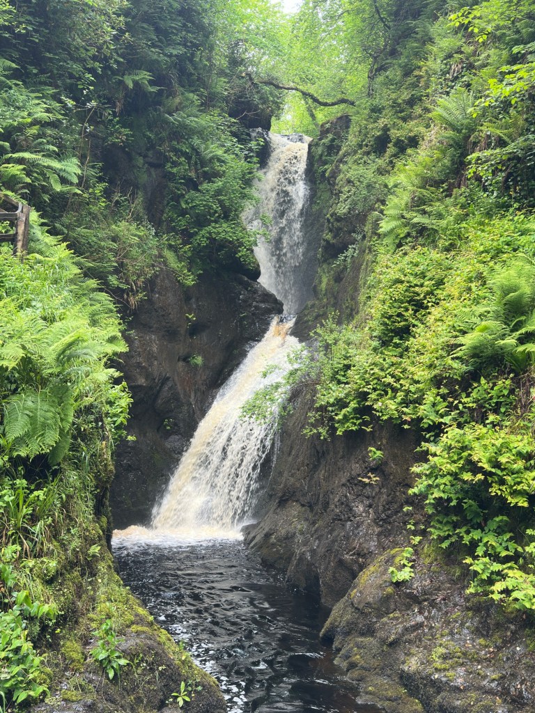The waterfall walk passes by Ess-na-Larach (the Mare’s fall) and Ess-na-Crub (the Fall of the Hooves) both named due to the equine thunder of the falling water.